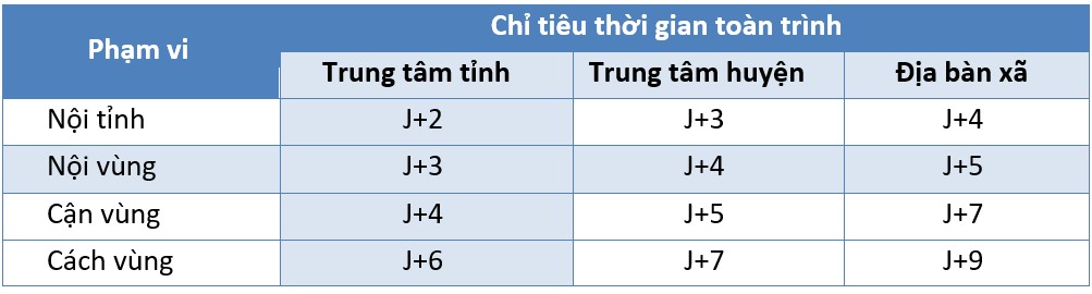 - Đối với bưu gửi chuyển hoàn áp dụng chỉ tiêu toàn trình như trên (J là ngày Bưu gửi có trạng thái chuyển hoàn trên hệ thống).