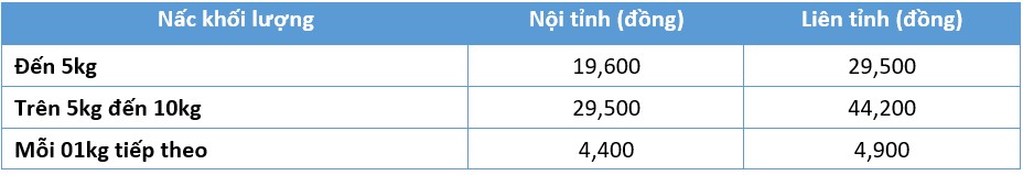 - Cước liên tỉnh áp dụng với các bưu gửi được chấp nhận và phát giữa các tỉnh/thành phố.
