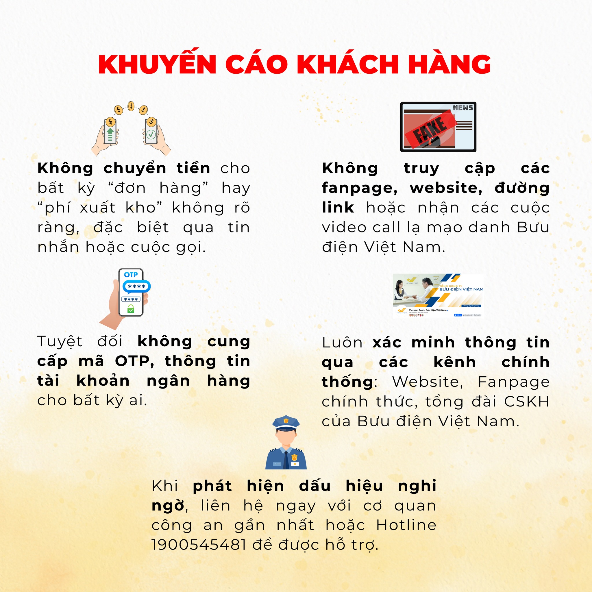 Bưu điện Việt Nam khuyến cáo Quý khách lưu ý và cẩn trọng trong mỗi giao dịch để tránh sập bẫy!