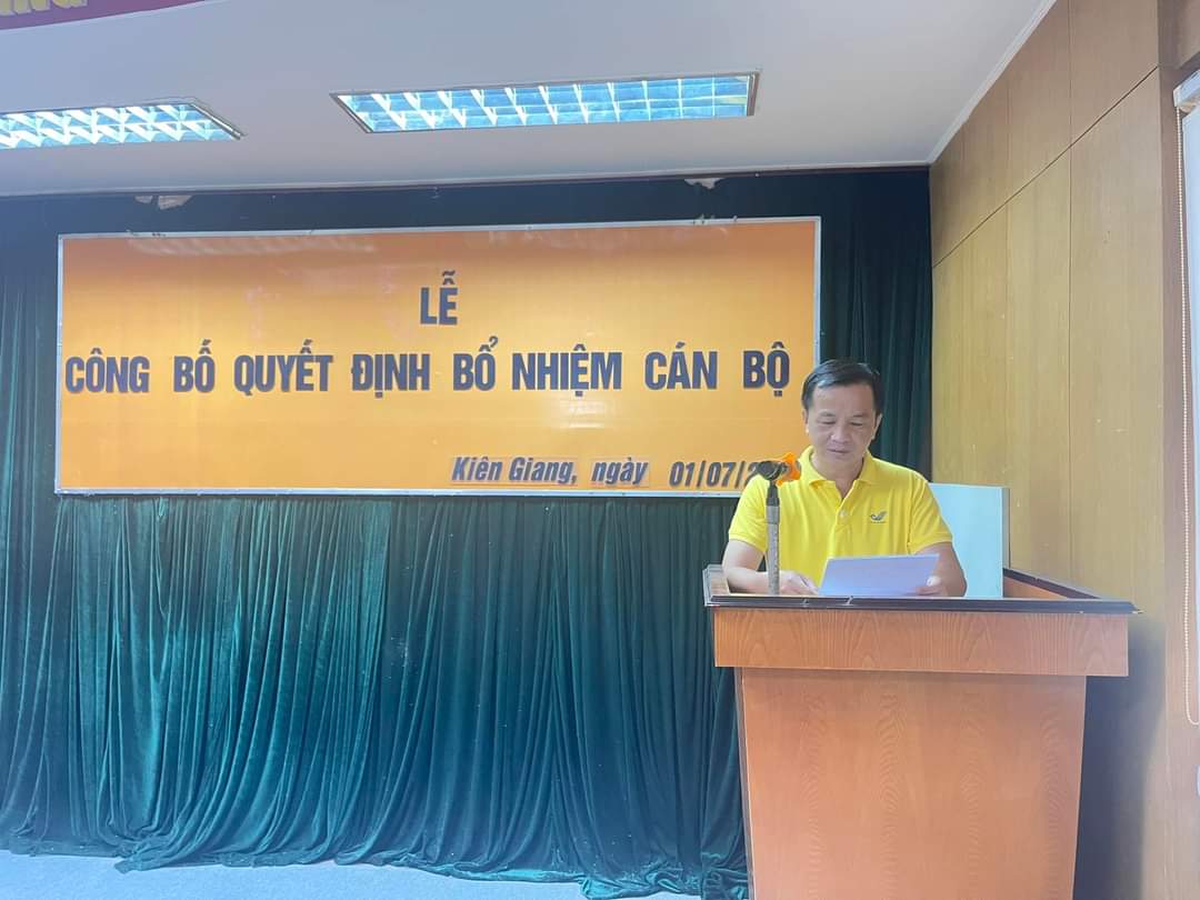 Sáng 01/7/2023 Bưu điện tỉnh Kiên Giang tổ chức Lễ công bố Quyết định bổ nhiệm cán bộ cho ông: Vũ Ngọc Tân – Phó Trưởng phòng Tài Chính-Kê toán
