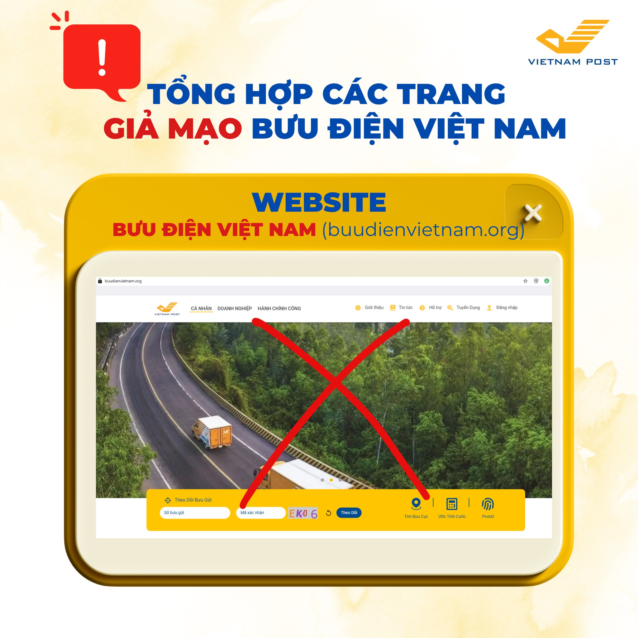 ⚠️Ngoài ra, còn xuất hiện trang web giả mạo với giao diện giống hệt website thật nhằm đánh lừa khách hàng khi giao dịch: https://buudienvietnam.org/ (Trang GIẢ MẠO – Không thuộc quản lý của Vietnam Post)